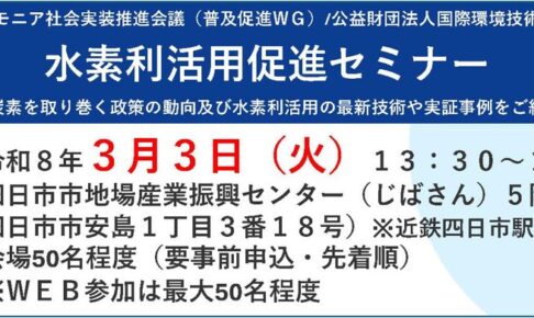 【連携パートナーの取り組み】「水素利活用促進セミナー~脱炭素を取り巻く政策の動向及び水素利活用の最新技術や実証事例をご紹介~」開催のご案内<主催:中部圏水素・アンモニア社会実装推進会議、公益財団法人 国際環境技術移転センター(ICETT)>